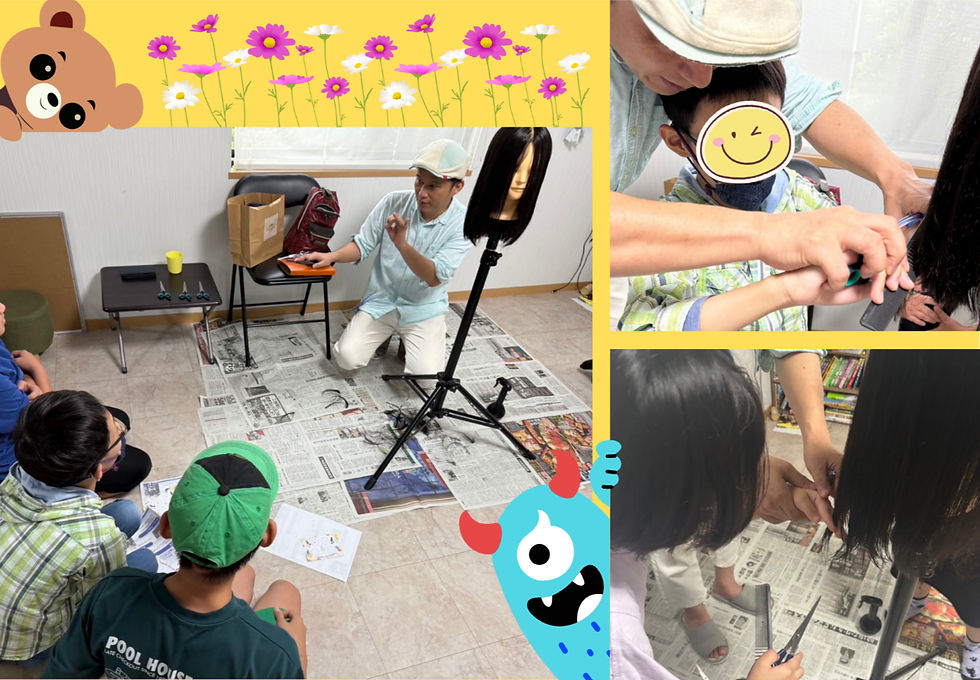 普段はお店で切ると言う子や、家で切るという子などバラバラでしたが、ウィッグとはいえ、「髪を切る」ことが初めてなので、みんな興味津々でどの子も食い入るように見てくるので、僕の体に穴が開きそうでした(笑)。